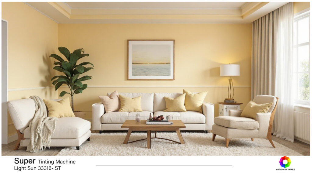 Selain itu, nuansa kuning hangat memberikan rasa kenyamanan dan keakraban. Ini adalah salahsatu pilihan yang sempurna untuk ruang keluarga atau kamar tidur karena dapat menciptakan atmosfer yang aman dan nyaman, seolah – olah anda sedang di peluk oleh kehangatan. Secara keseluruhan, penggunaan warna kuning hangat dapat mengubah ruang menjadi tempat yang penuh semangat, ramah, dan menyenagkan untuk di tempati.
